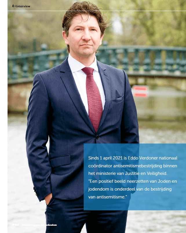 “Het is soms mede onwetendheid. Je ontwikkelt makkelijker een bepaald wantrouwen tegen iemand die je niet kent, die anders is. Een positief beeld neerzetten van Joden en jodendom is dan ook onderdeel van de bestrijding van antisemitisme. Dat is een nieuwe trend, in het buitenland gebeurt dat al. Duitsland heeft vorig jaar veel aandacht besteed aan 1700 jaar Joods leven in dat land in de vorm van artikelen, festivals en tentoonstellingen. Dat helpt de onbekendheid weg te nemen. Dat kunnen wij ook doen, aandacht geven aan Joodse gebruiken en tradities, de Joodse feestdagen markeren. De premier kan bijvoorbeeld aandacht besteden aan het Joods Nieuwjaar. Dat creëert bewustzijn.”