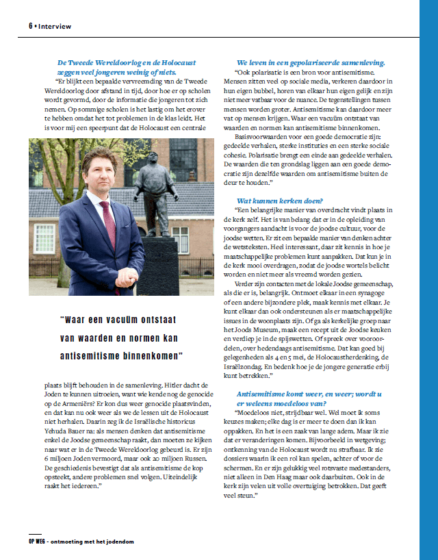 In de augustuseditie van Op Weg, een magazine van de Protestantse Kerk, verscheen een interview met de NCAB. In het interview sprak de NCAB onder meer over hoe antisemitisme in Nederland opkomt en wat kerken ertegen kunnen doen:
